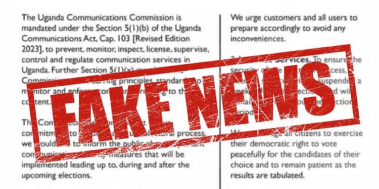The Uganda Communications Commission (UCC) has dismissed as fake a viral notice circulating on social media claiming that internet and mobile money services will be suspended nationwide on January 8, 2026, ahead of the general elections.